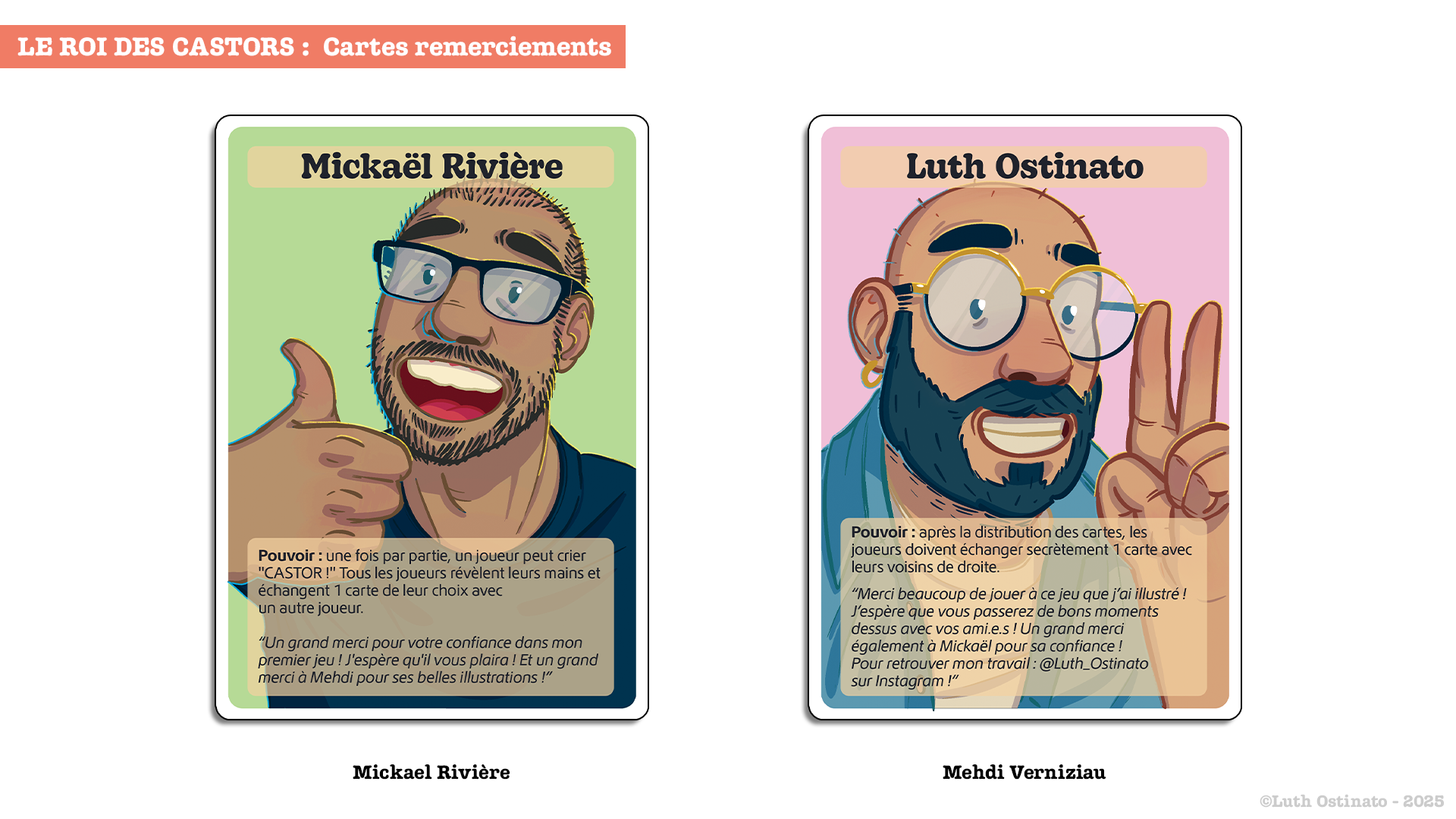 Durant l'année 2025 j'ai eu la chance de collaborer avec Mickaël Rivière, de chez Maïki Prod, sur un jeu de carte sur les thèmes des castors et orienté pour les 8 ans et plus : Le Roi des Castors.